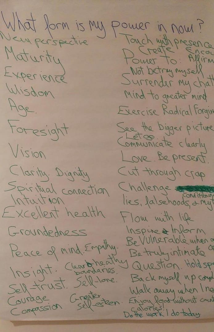 The next day, I reminded myself that the masters live in the world of transformation, not the illusion of gain and loss. So grabbing a flip chart sheet and a marker, I wrote this question across the top of the page "What form is my power in now?"