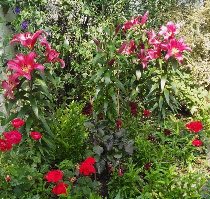 Where sumptuous lillies tower above, almost dwarfing the gay, fragrant cosmos. Spires of the deepest pink, exclamations of glory, transform the border into a 3D model of exuberant perfection.
